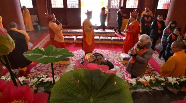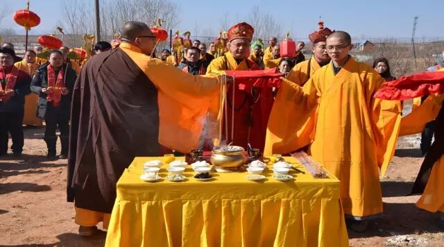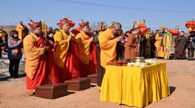 中午时分,场外先将水陆期间的消灾牌位一一焚化。每个参加水陆的功德主报名后,在内坛立有黄色的超度牌位,外坛则立着红公的消灾牌位,红色牌位的功能是消灾祈福用。